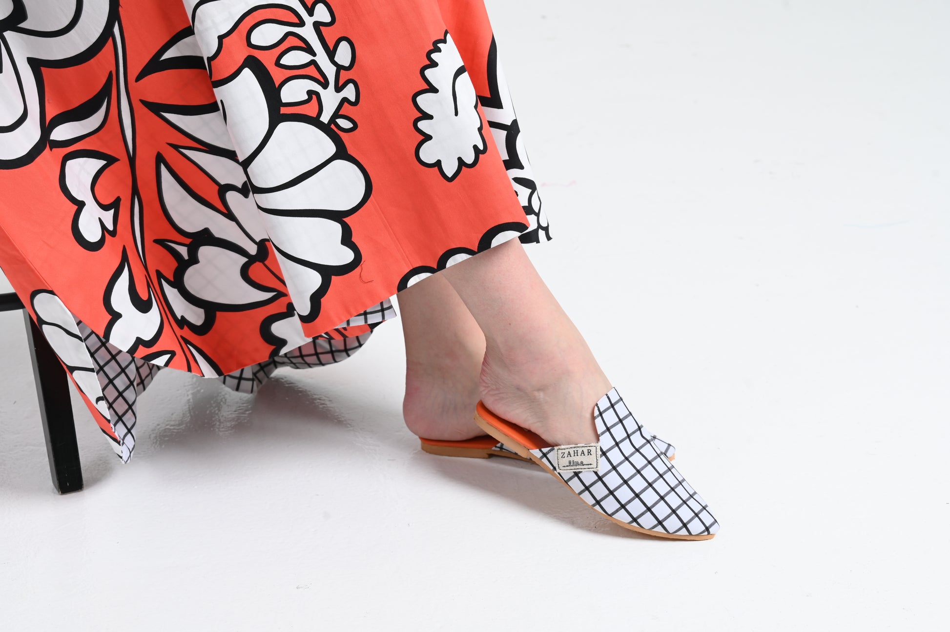 حذاء نسائي مفتوح من الخلف بتصميم مربعات أنيق
